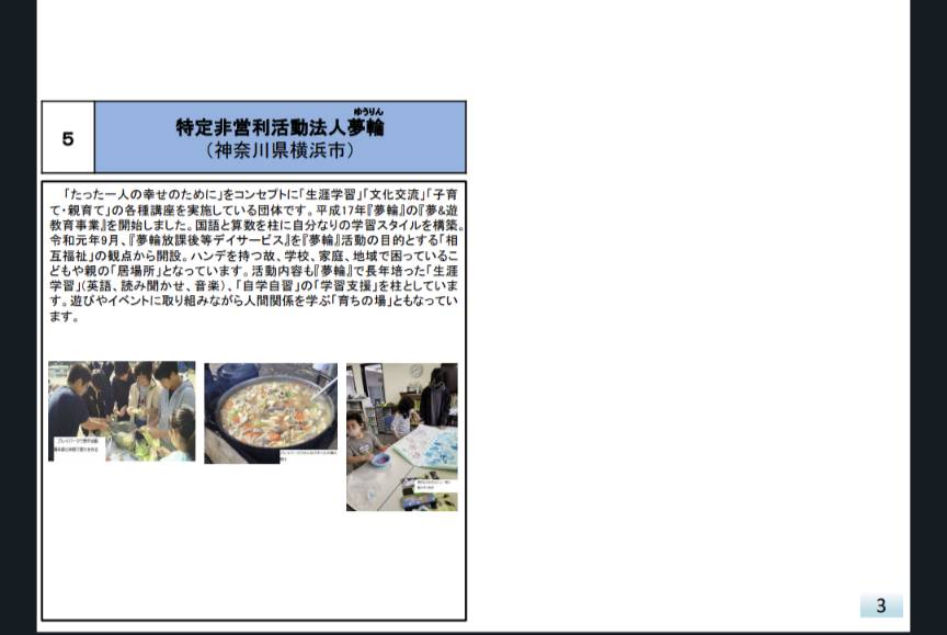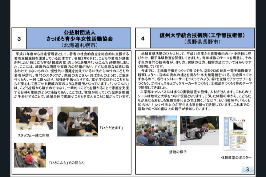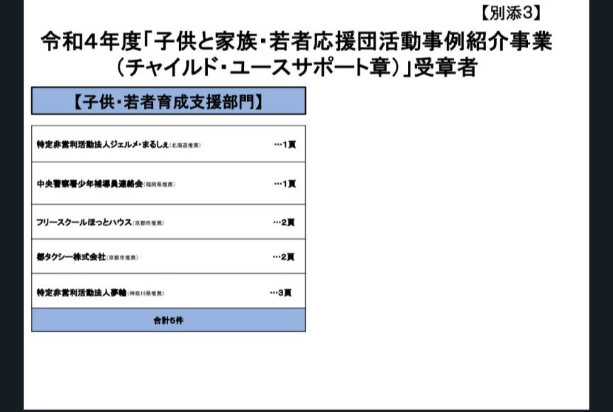 「子供と家族・若者応援団活動事業例紹介事業(チャイルド・ユースサポート章)」