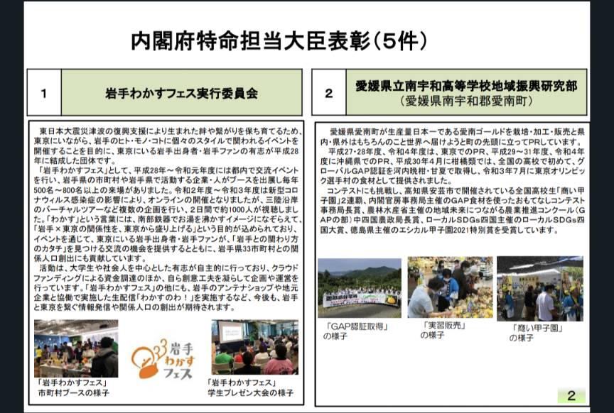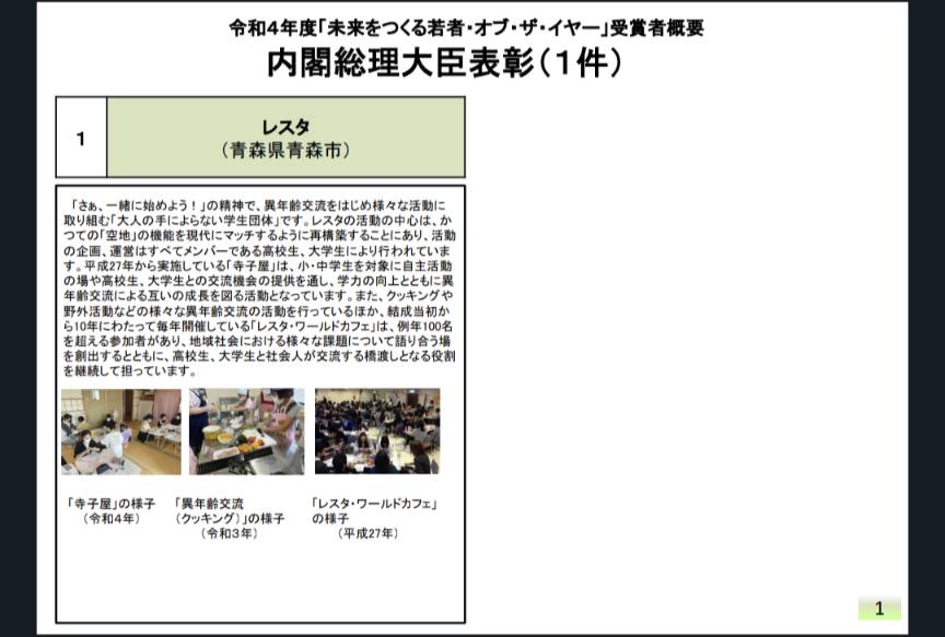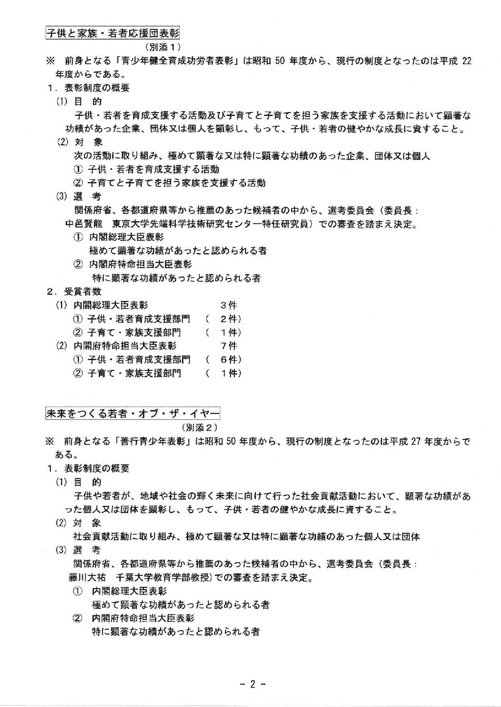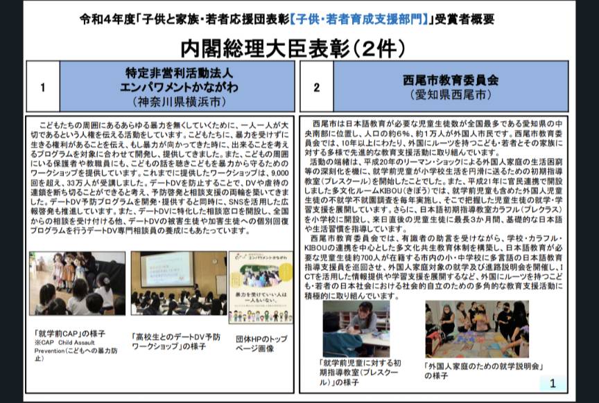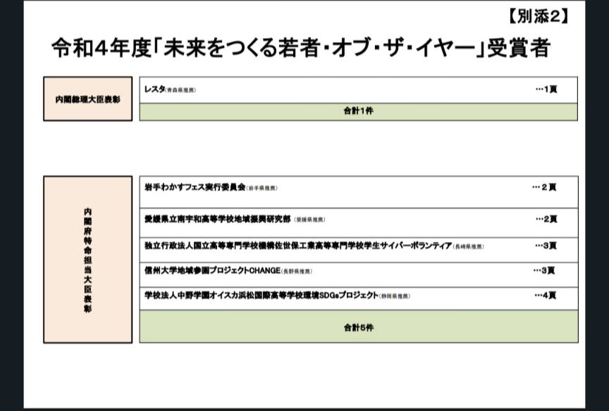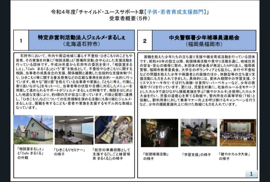 令和4年度 「子供と家族・若者応援団表彰」「未来をつくる若者・オブ・ザ・イヤー」